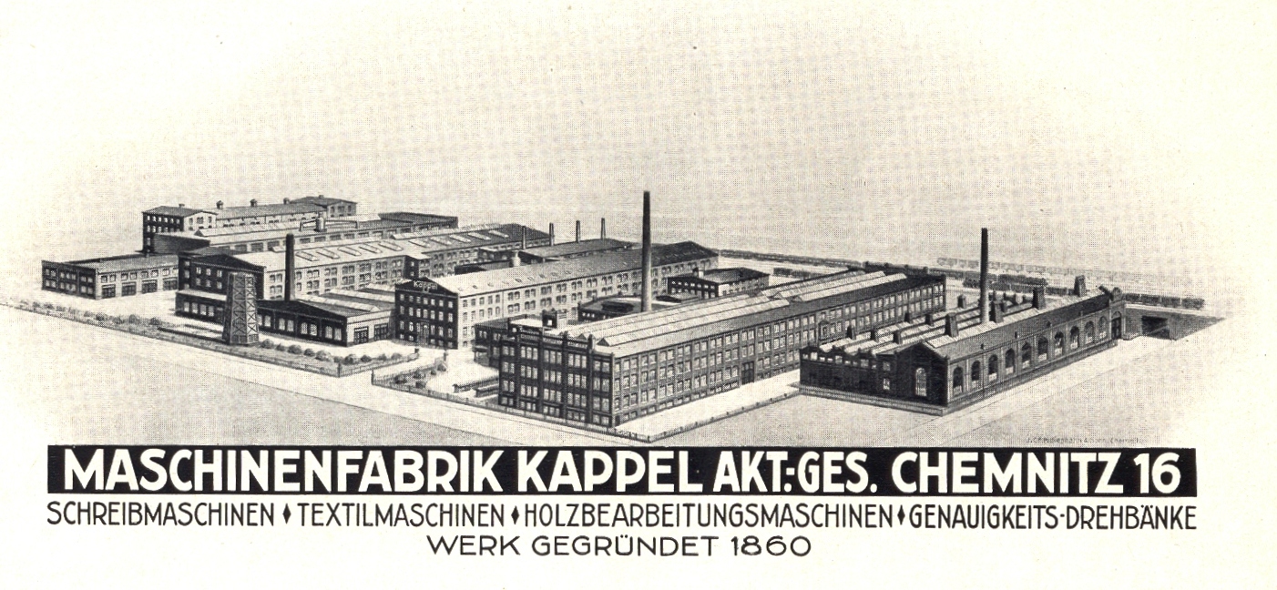 Geschichte: Die Maschinenfabrik Kappel AG war ein bedeutender Maschinenbaubetrieb in Chemnitz. Sie stellte hauptsächlich Sägewerks- und Holzbearbeitungsmaschinen aber auch zahlreiche verschiedene Textilmaschinen her. Im Jahr 1914 begann sie mit der Herstellung einer Standardschreibmaschine, die den damaligen modernsten Ansprüchen gerecht wurde. Über verschiedene Modellvarianten wurde ab 1937 zum 75 Firmenjubiläum als letztes das Modell 75 heraus gebracht.