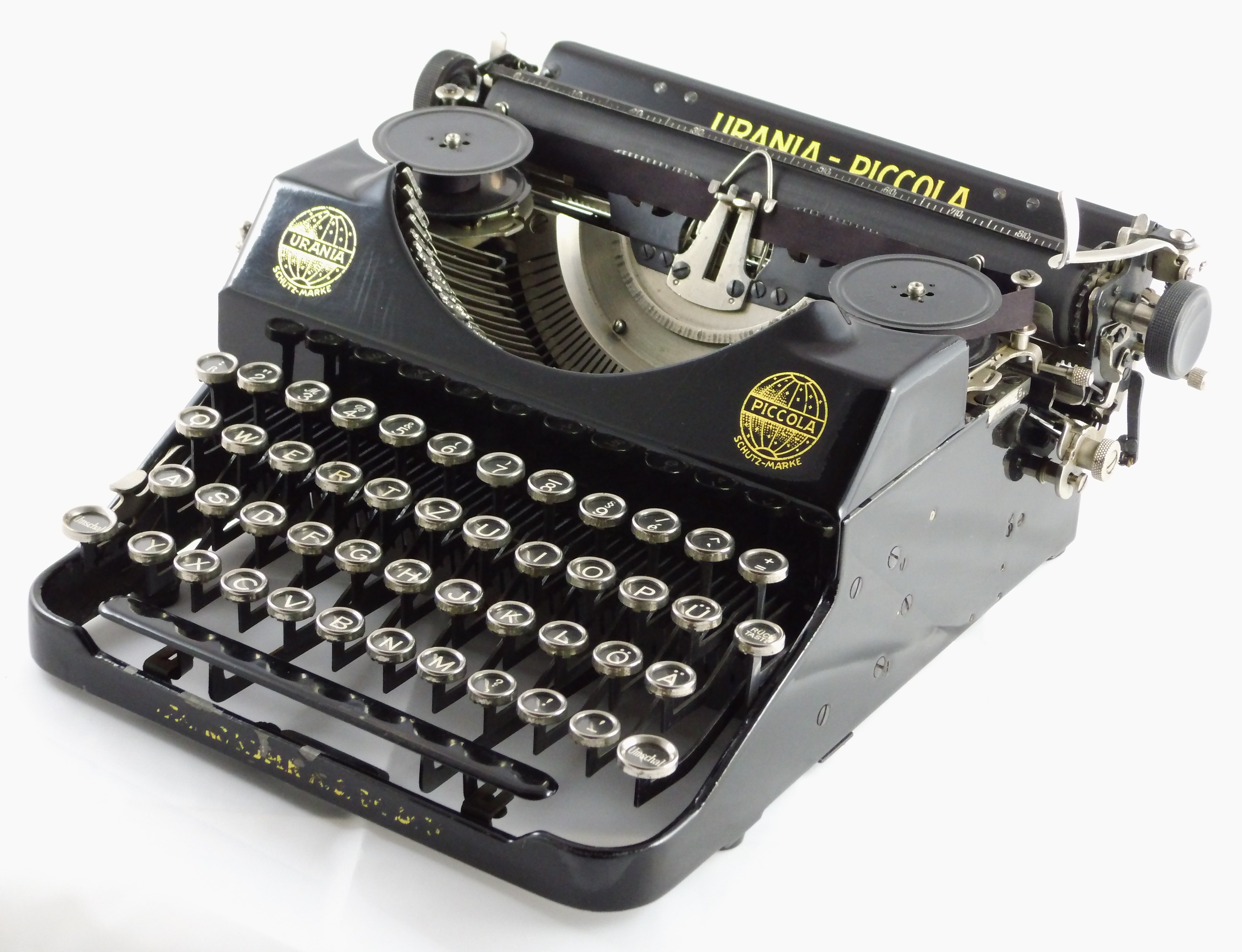 Die Kleinschreibmaschine „Perkeo“ wurde als Antwort auf die „Klapp-Erika“ der Fa. Seidel & Naumann Dresden ab 1912 produziert. Ab 1925 wurde die KSM „Urania-Piccola“ und ab 1935 die „Klein-Urania“ hergestellt.
